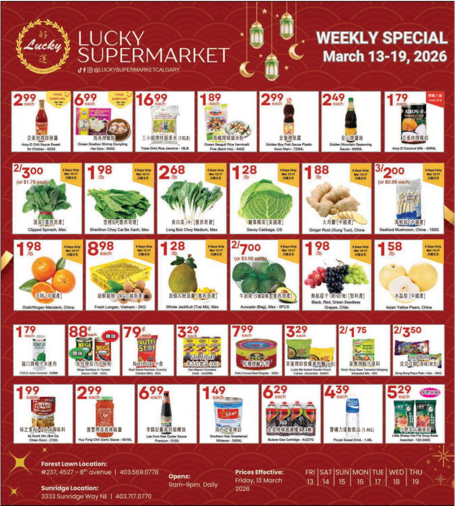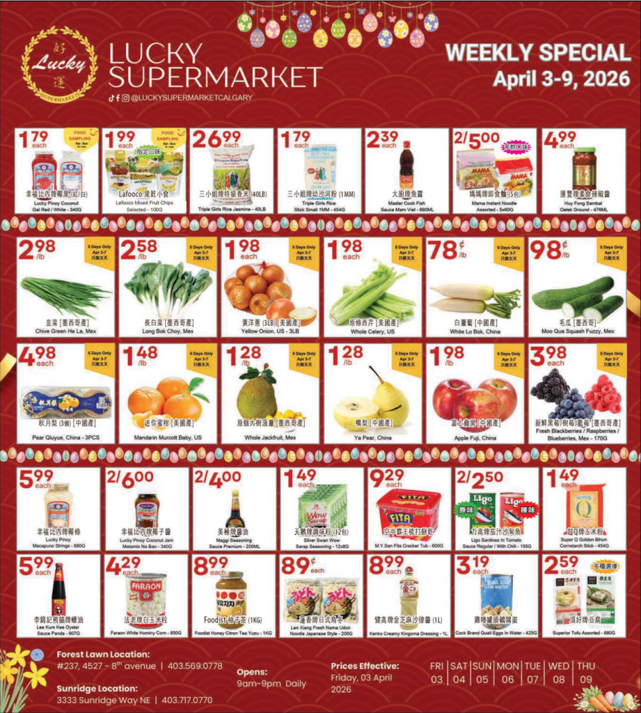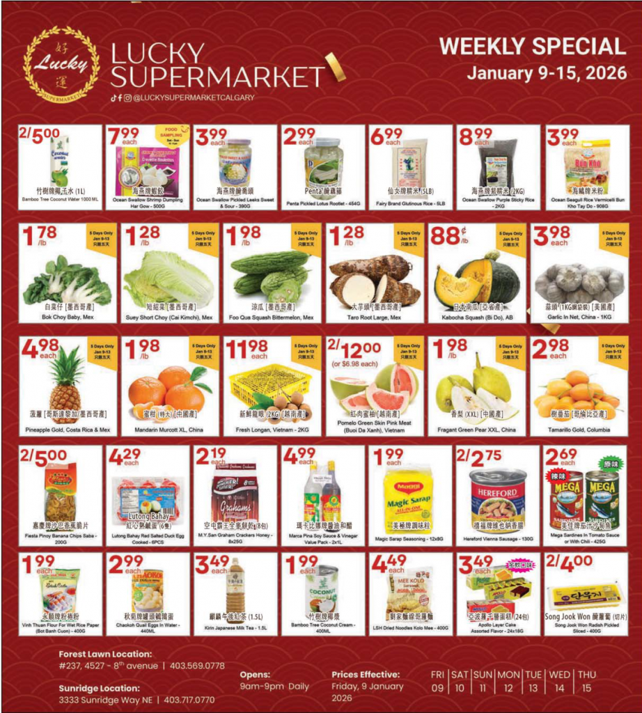 This Week's Specials, please go on www.luckysupermarket.ca/calgary to check out the details.本週特價貨品,詳情請瀏覽我們的網頁。 2022-08-31